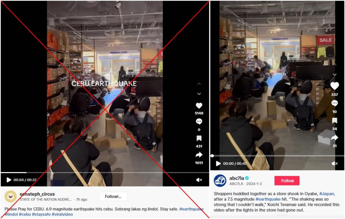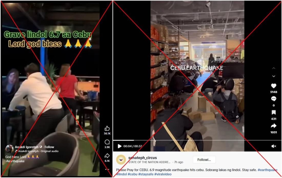 Another video circulating on October 1 showed CCTV footage of a store being rattled, with its caption falsely depicting it as the Cebu quake.