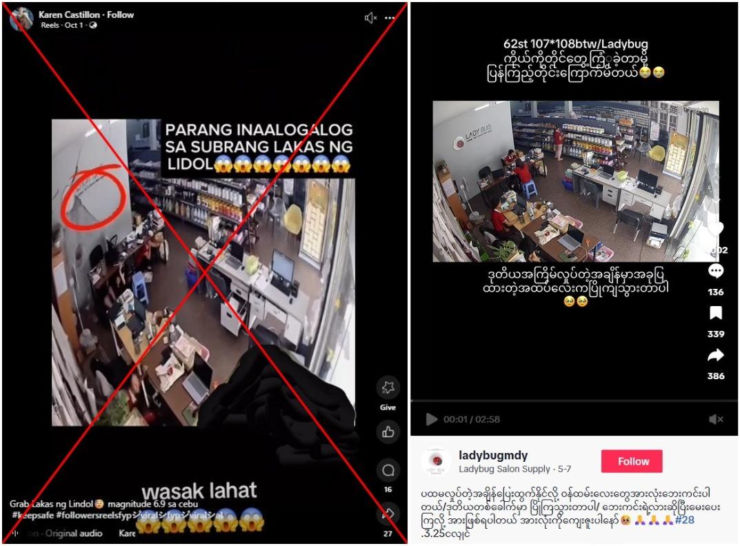 Lastly, the security footage of the quake-stricken shop was taken in Myanmar, not the Philippines.