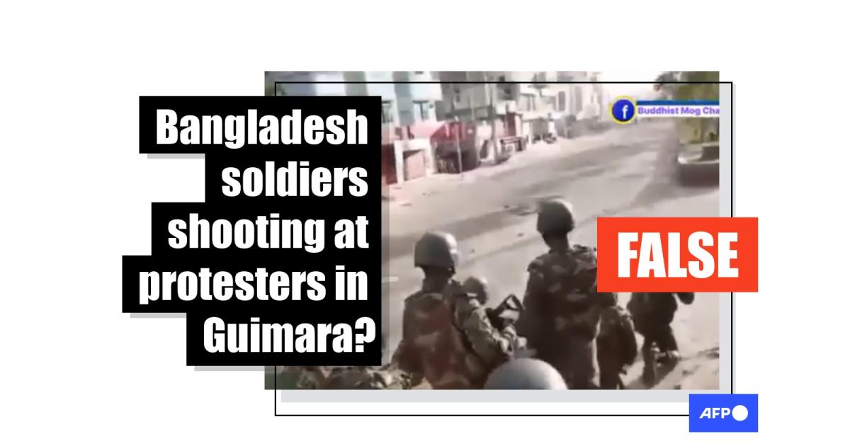 "Now Bangladesh army shot the public in Guimara, Chittagong, Bangladesh. The video of Bangladesh army opened fire on protesters emerges," reads the Burmese-language caption to a video shared on Facebook on September 29.