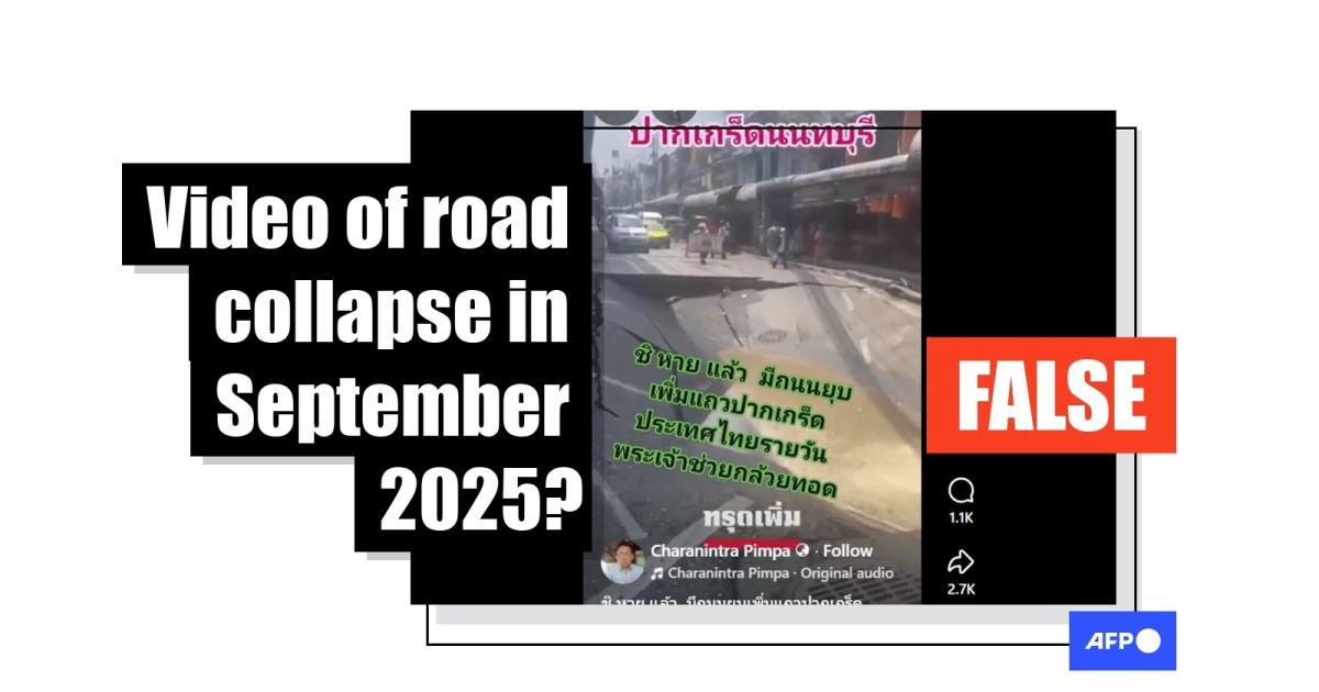 "It's gone! There's a road collapse in Pak Kret. Such incidents are happening daily in Thailand now. Oh my god," reads the Thai-language caption of a Facebook reel shared on September 25, 2025.