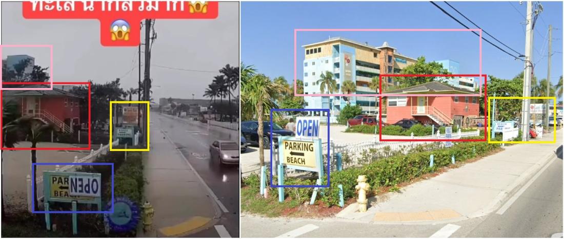 Elements of the video also match Google Street View imagery taken in July 2022 from Estero Boulevard in Fort Myers Beach, Florida (archived link).
