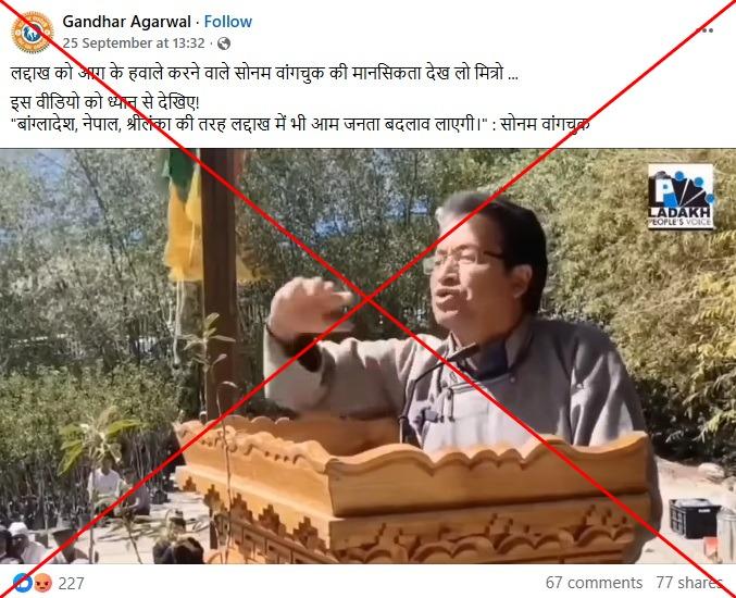 Posts misrepresent Ladakh activist's speech about 'peaceful revolution'
