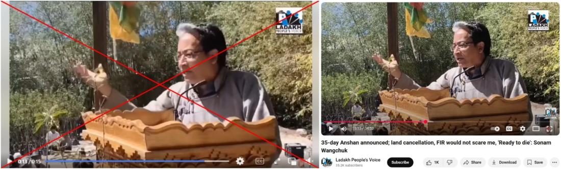 The falsely shared video cuts before Wangchuk goes on to say: "But unlike others, Ladakh does not need to resort to violence, stone-pelting, or chaos."