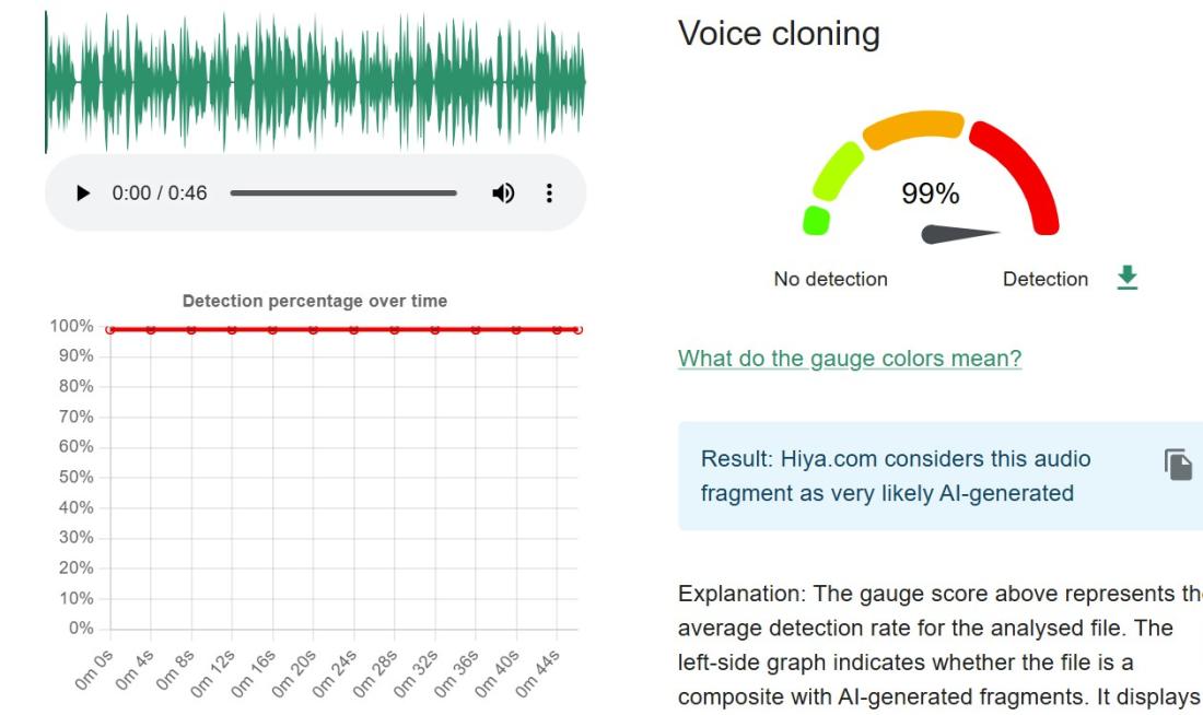 AFP Fact Check ran the audio from the video through an AI detector called Hiya, which is part of the InVID-WeVerify verification toolkit.