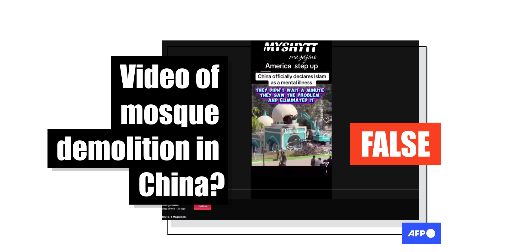 China has long faced scrutiny over its treatment of Muslim communities and religious sites, but a video circulating online of an excavator tearing down a building resembling a mosque is unrelated to Beijing's crackdown. The clip in fact shows the demolition of an illegal structure at an amusement park in Indonesia.