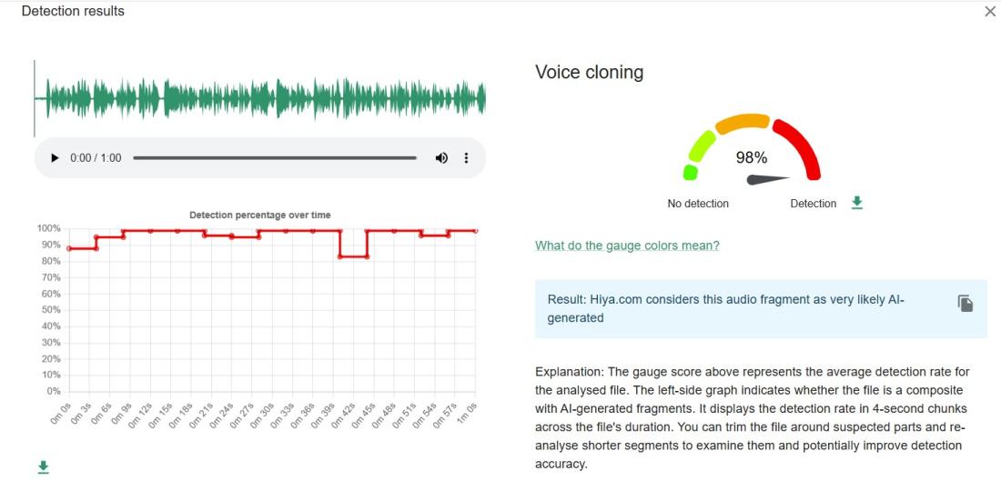 The voices heard in the video report have accents that are difficult to identify. AFP Fact Check ran the audio from the video through an AI detector called Hiya, which is part of the InVID-WeVerify verification toolkit.