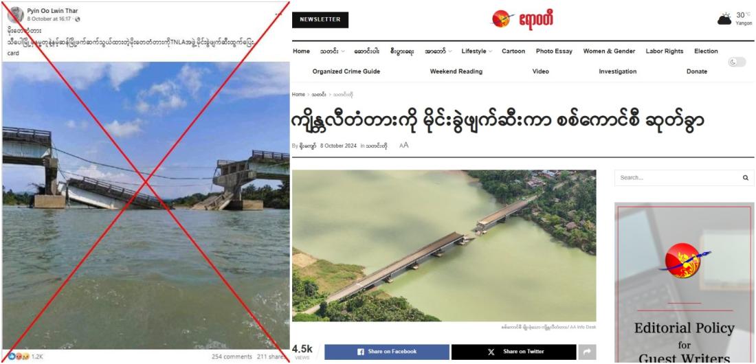 Myanmar's ruling junta said in October 2025 that it had recaptured from an ethnic armed group a town on a trade highway to China. Online posts that surfaced during the fighting falsely claimed a major bridge had been severely damaged. However, the picture they shared depicts a crossing destroyed a year ago in a state hundreds of kilometres (miles) away.