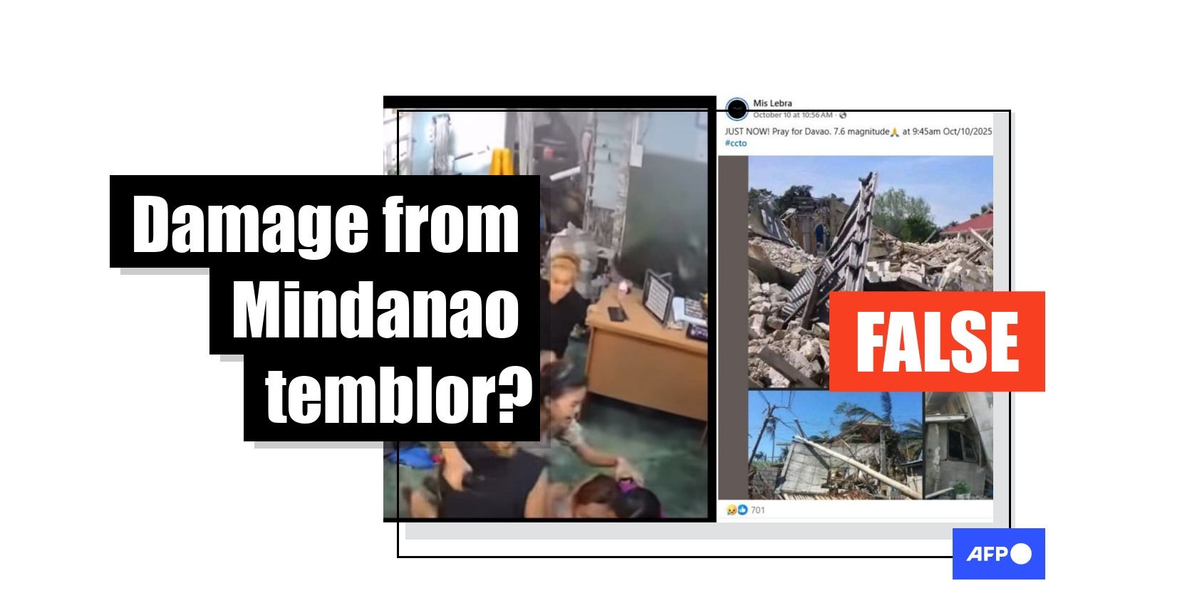 Two powerful earthquakes struck the southern Philippine island of Mindanao on October 10, 2025 and killed eight people, but widely shared visuals supposedly depicting the disaster are unrelated. A video of panicked people inside a shop was in fact filmed in Myanmar, while photos of destroyed buildings show the aftermath of a quake and a typhoon that hit the Philippines in 2013.