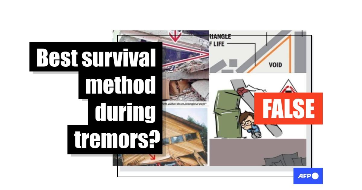 Experts worldwide agree that the "drop, cover and hold on" safety procedure is the best way to protect oneself from falling debris during earthquakes. They say widely shared claims touting a so-called "triangle of life" method -- hiding in triangular-shaped voids during a tremor -- are not supported by evidence and are dangerous.