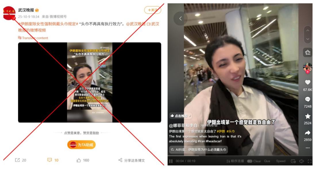 The claim the hijab law had been lifted also appeared in similar Douyin, TikTok, Facebook and Instagram posts.