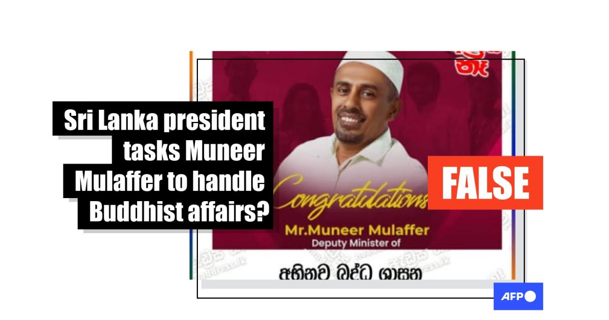 Long-simmering religious tensions between Sri Lanka's Buddhist majority and Muslim minority are fanning false claims that Muslim politician Muneer Mulaffer was named deputy minister for Buddhist affairs. Mulaffer was given a position that handles broader religious and cultural matters, and the portfolio for Buddhist affairs belongs to another deputy minister.