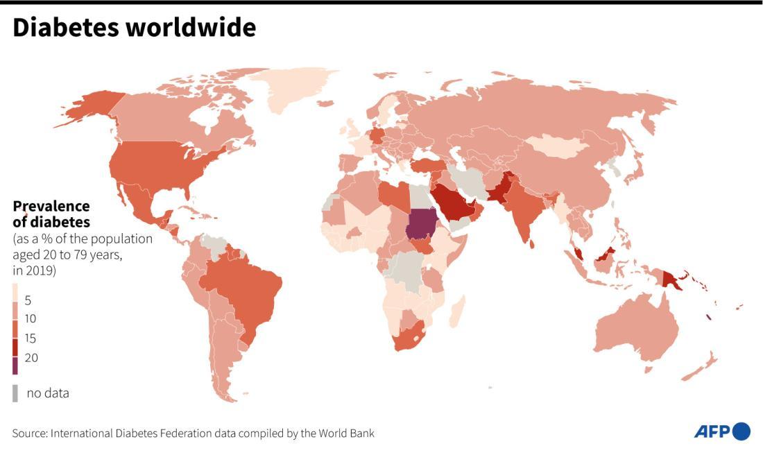 Diabetes is a condition caused by excessive levels of blood sugar in the body, followed by complications such as heart diseases, kidney problems, eye problems and neurological impairment (archived link).