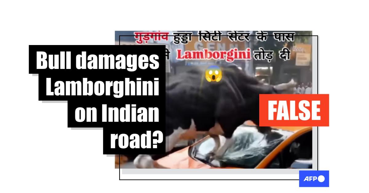 "Bull destroys Lamborghini near Gurugram's HUDA City Centre," reads Hindi-language text over a video shared on Instagram on October 5, 2025.