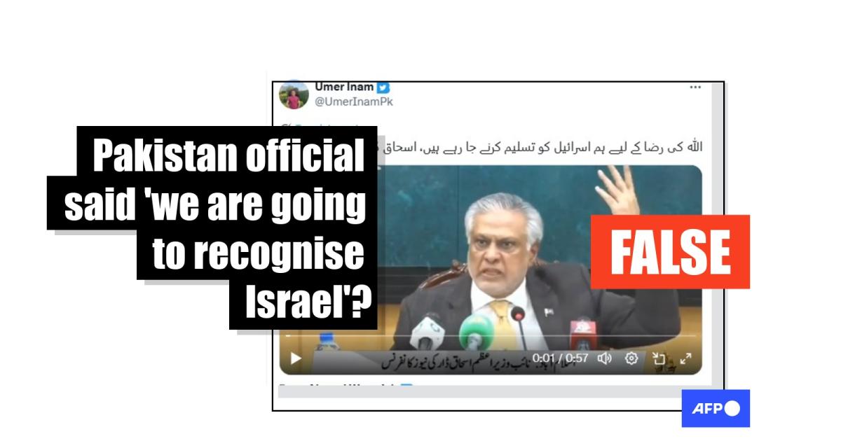 After several European and Muslim countries backed a plan by US President Donald Trump to end the war in Gaza, social media users in Pakistan circulated a clip of Deputy Prime Minister and Foreign Minister Ishaq Dar with the false claim that he had called for recognising Israel. However, Dar made no such statements -- and Pakistan had not recognised Israel nor established diplomatic ties with it as of late October.