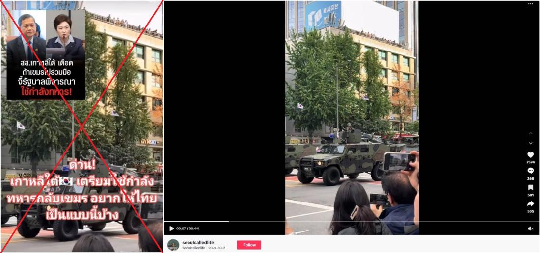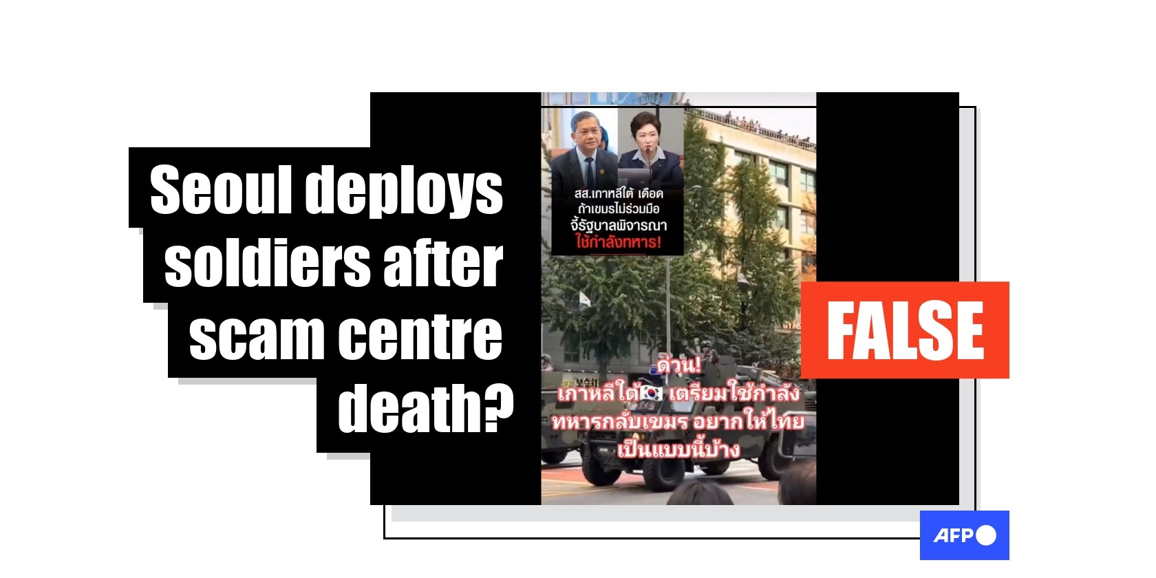 South Korea has banned travel to parts of Cambodia in response to the killing of a Korean student whose death is linked to a scam centre gang, but rumours that Seoul had deployed troops are baseless. False posts that surfaced widely among social media users in Cambodia's rival Thailand feature an old video from South Korea's Armed Forces Day in October 2024.