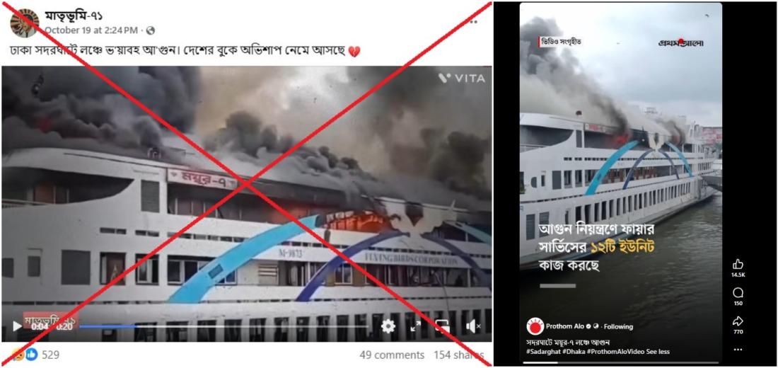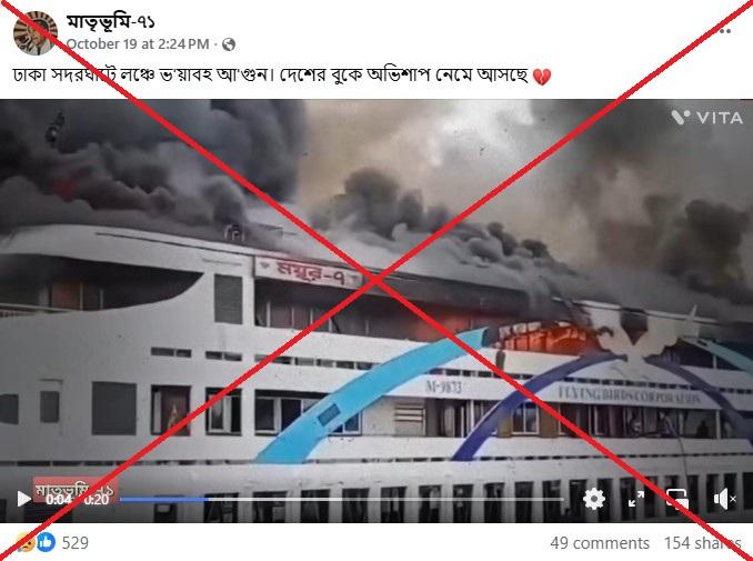 "Terrible fire at Dhaka Sadarghat. A curse is coming down on the country," reads the Bengali-language caption of a Facebook video shared on October 19, 2025.