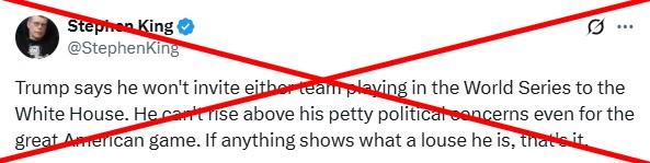 Popular fiction author and regular Trump critic Stephen King also appeared to reference the alleged Trump statement in his own post on X.