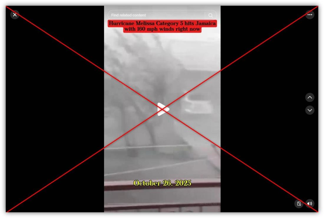 Melissa did not make landfall in Jamaica until October 28 -- two days after the TikTok video claimed to show it pummeling the country "right now." On October 26, the monster hurricane was about 120 miles (around 190 kilometers) southeast of Kingston.