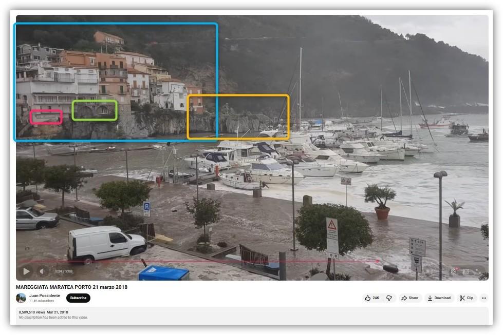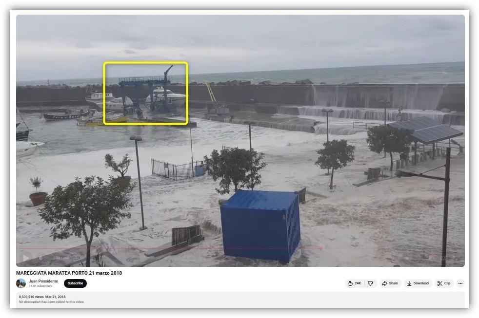 Those sources, as well as Italian media outlets that covered the event, indicated that it showed tsunami-like waves hitting a port in Maratea, Italy (archived here).