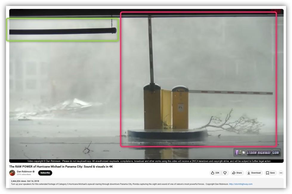 Robinson, who included the shot as part of a video posted on YouTube, wrote in the video's caption that it was recorded as the storm roared through Panama City, Florida (archived here).