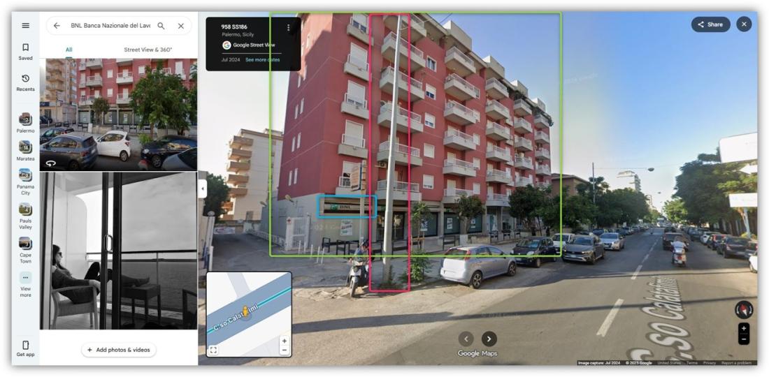 Based in part on a bank sign in the frame, AFP geolocated the clip to a main road in Palermo (archived here).
