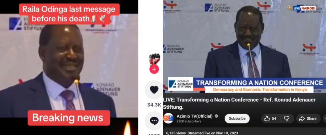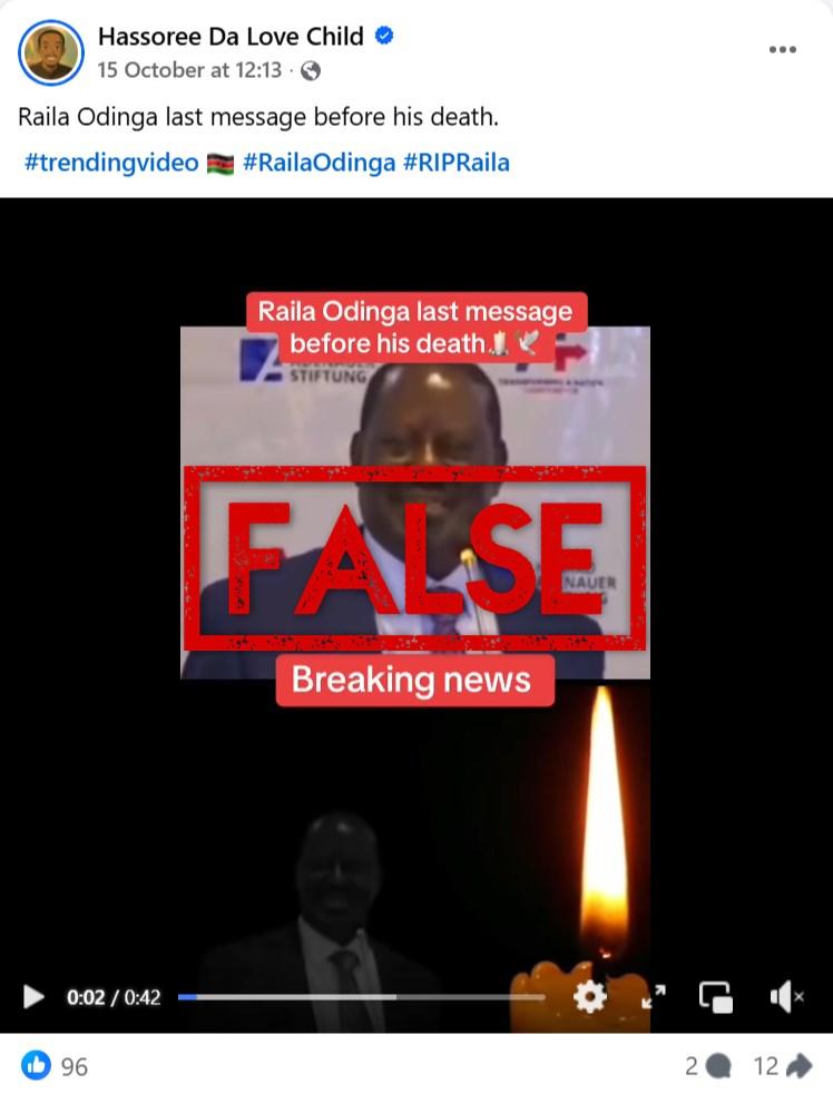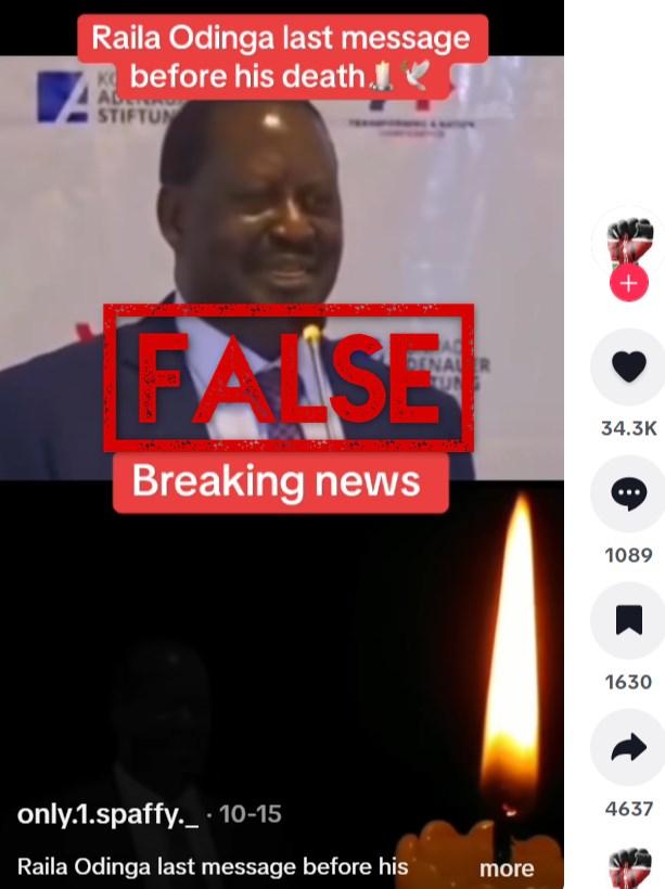 Old speech misrepresented as Kenyan politician Raila Odinga’s final public address