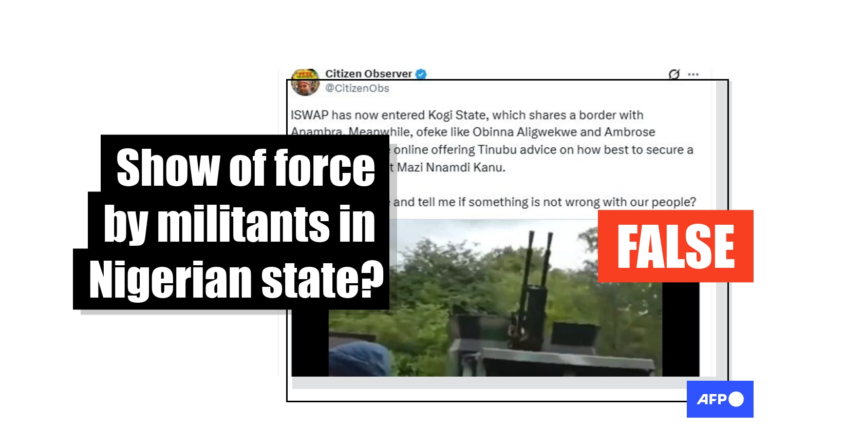 Northern Nigeria has endured years of insecurity as jihadist groups and armed criminals terrorise communities, forcing thousands to flee their homes. A recent social media post claims to show a video of the Islamic State West Africa Province (ISWAP) in a north-central Nigerian state with seized military assets. But the claim is false; the video, taken in 2024, shows military equipment captured in Burkina Faso by a group affiliated with al-Qaida in West Africa.