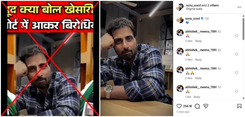 A subsequent keyword search led to a video posted on Sood's verified Instagram account on October 25 with the same visuals but different audio (archived link).