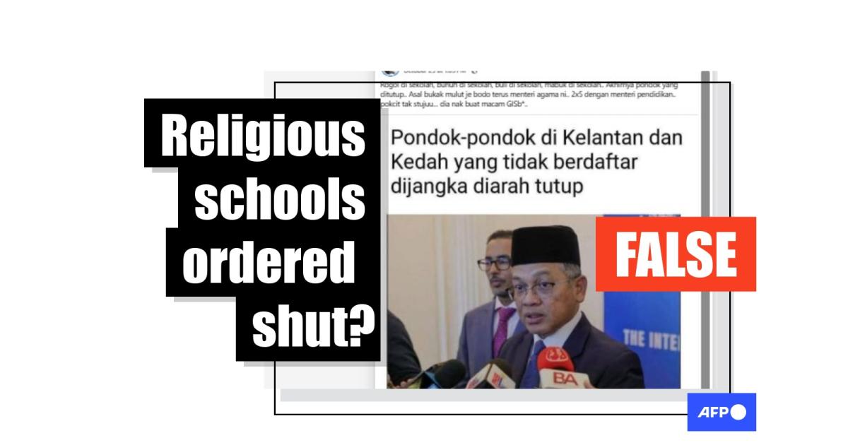 Malaysian schools have seen a spate of violent incidents, including bullying, rape and murder, but there has not been an order to close religious schools in the states of Kedah and Kelantan from authorities. The religious affairs minister, who oversees religious education institutions, called the claims circulating online "false, malicious and defamatory". As of November 12, there have been no official announcements or reports about the closure of religious schools.