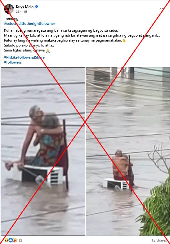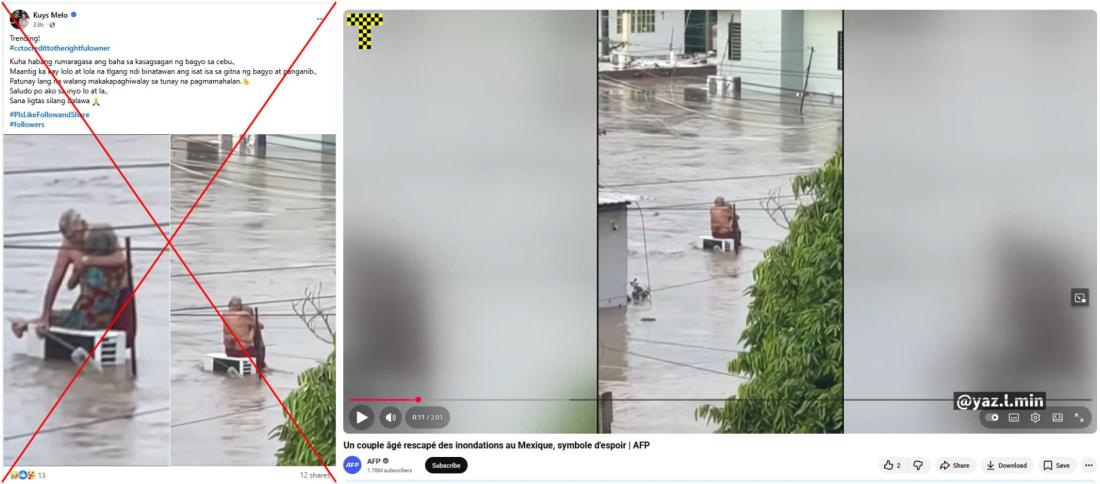 Typhoon Kalmaegi flooded swathes of the central Philippines in early November, sweeping away cars and riverside shanties, and tearing roofs off buildings, but images circulating on social media of an elderly couple waiting to be rescued from muddy floodwaters were not taken in the archipelago. The images were taken from video filmed in Mexico in October, after torrential rains triggered devastating floods in several states across the country.