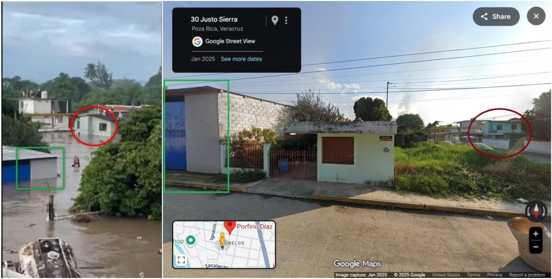 The footage corresponds to Google Street View imagery of the couples' neighbourhood in Poza Rica (archived link).