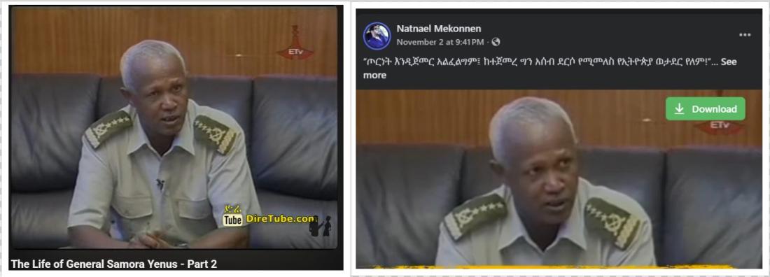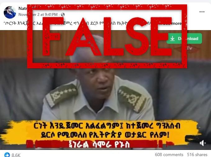 The post, widely spread by Ethiopian government supporters here and here, contains a seven-minute video in which Samora is seen speaking, but his voice is not heard.