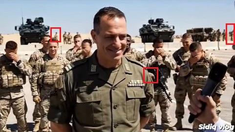 One soldier with a rifle slung on his shoulder also appears to have three hands.