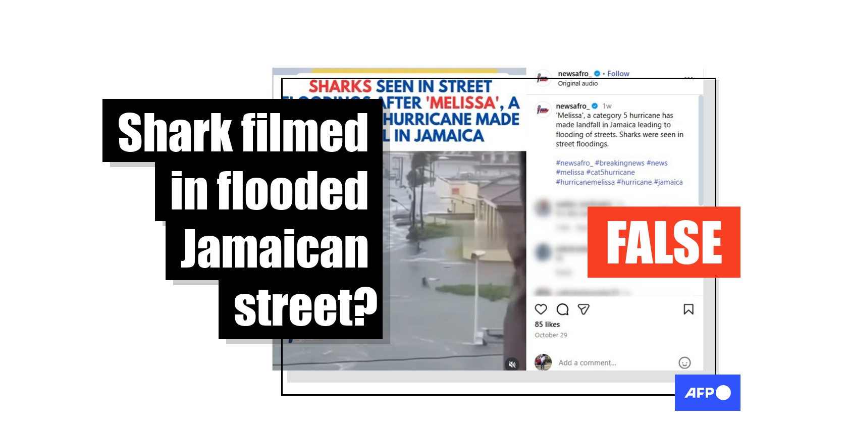 The impact of Hurricane Melissa in Jamaica in late October devastated the island nation, but an Instagram video purportedly showing a shark swimming through a flooded street in the storm’s aftermath was generated using AI.