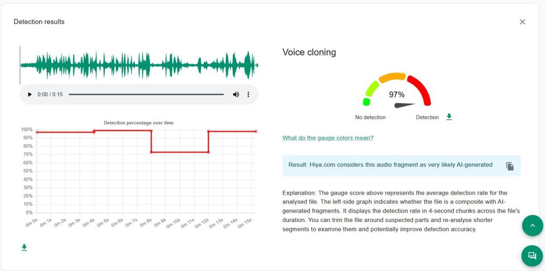 AFP Fact Check also extracted the audio of the Instagram video and ran it through Hiya, an AI detection tool.