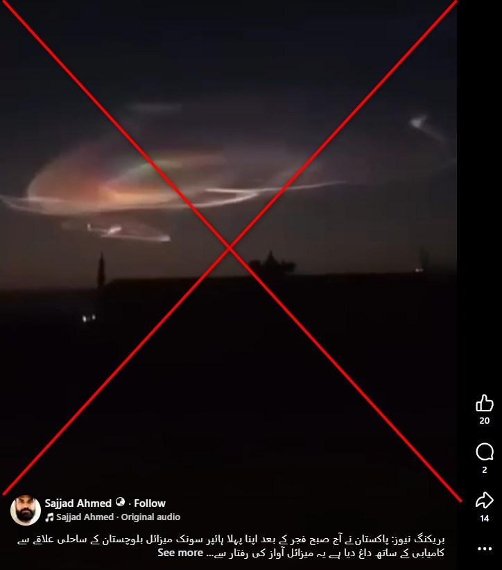Visuals show rare cloud formation, not Pakistan testing long-range weapons