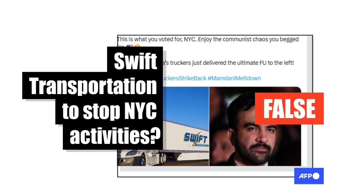 Social media users critical of Zohran Mamdani's historic New York City mayoral win are sharing posts claiming trucking giant Swift Transportation will no longer provide service through America's largest city in protest of the leftist mayor-elect's policies. However, the company publicly stated it will continue its activities in the area and the claims stemmed from satirical content.