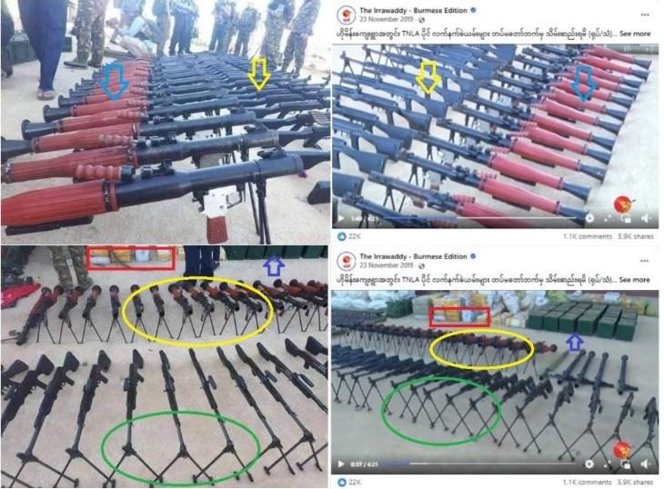 Myanmar's Defense Office also published pictures of the seizure on November 22, 2019, and said in a statement the weapons and munitions were discovered at Homain village following clashes with TNLA forces in the area (archived link).