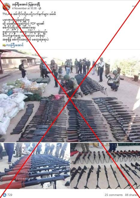 Old images of captured weapons falsely shared as recent Myanmar junta seizure