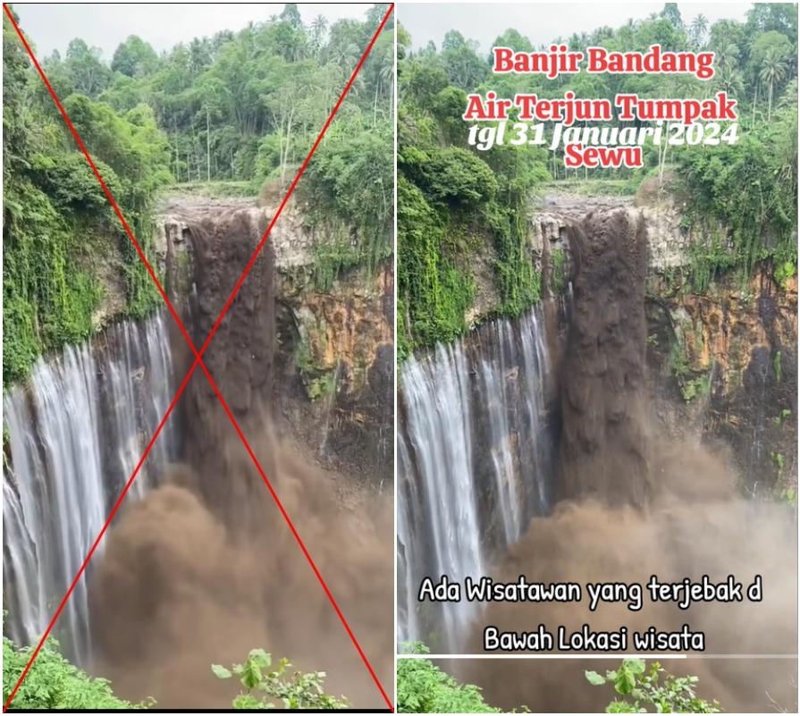 "Flashflood at Tumpak Sewu waterfall; 31 January 2024," Indonesian-language text on the video reads.