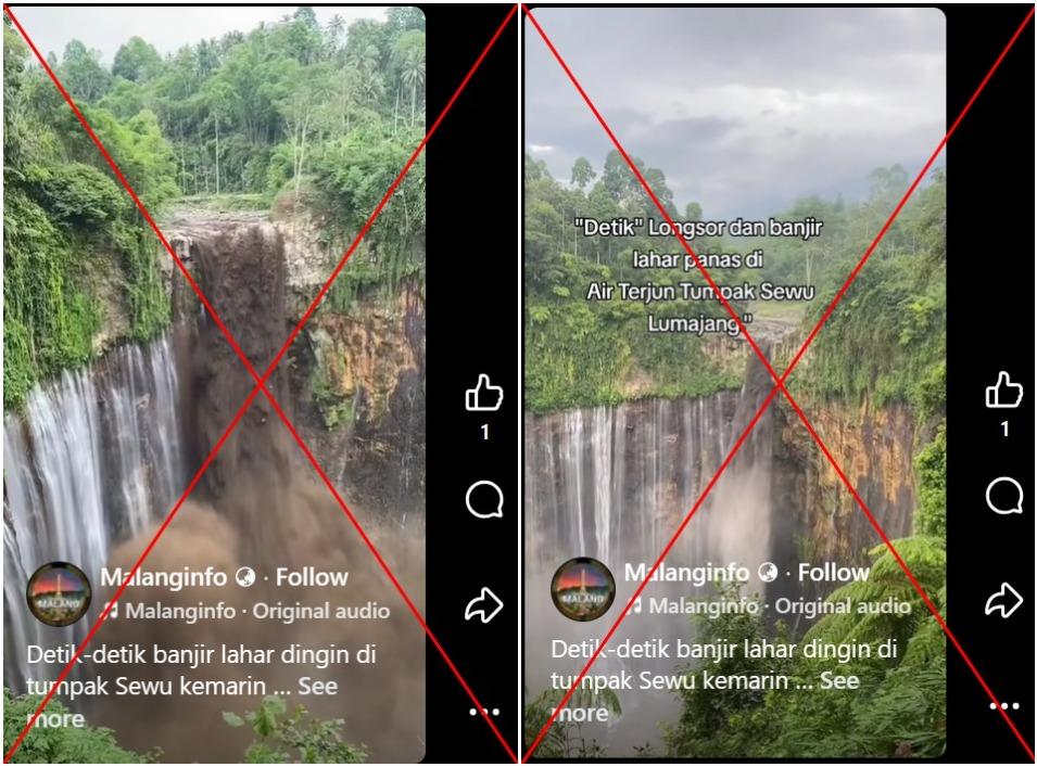 The footage also spread on Facebook and TikTok, where some comments indicate users believed the Semeru eruption was powerful enough to trigger a lava flow at Tumpak Sewu.