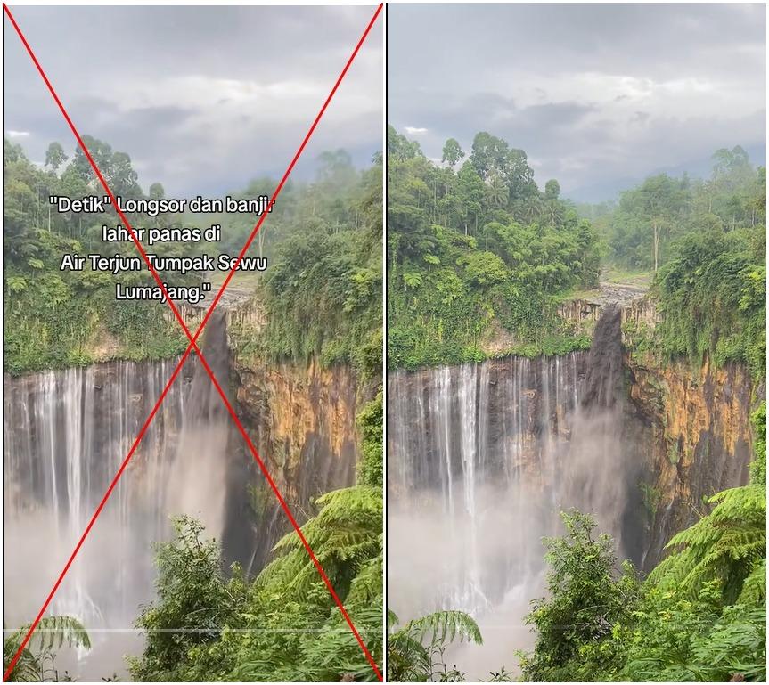 After Mount Semeru in the main Indonesian island of Java erupted on November 19, 2025, social media posts shared old clips of a volcanic mudflow falsely claiming they showed its impact on the waterfalls situated at the foot of the volcano. The videos predate the latest eruption, and local tour guides and guesthouse owners told AFP that while the area had been lightly covered with volcanic ash, the site remained open to visitors as usual.