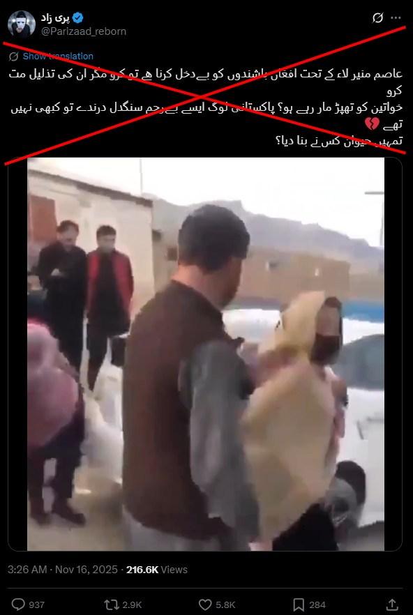 "If you're going to evict Afghan nationals under (army chief) Asim Munir's law, then do it, but don't humiliate them," reads part of the Urdu-language caption of an X video shared on November 16, 2025.