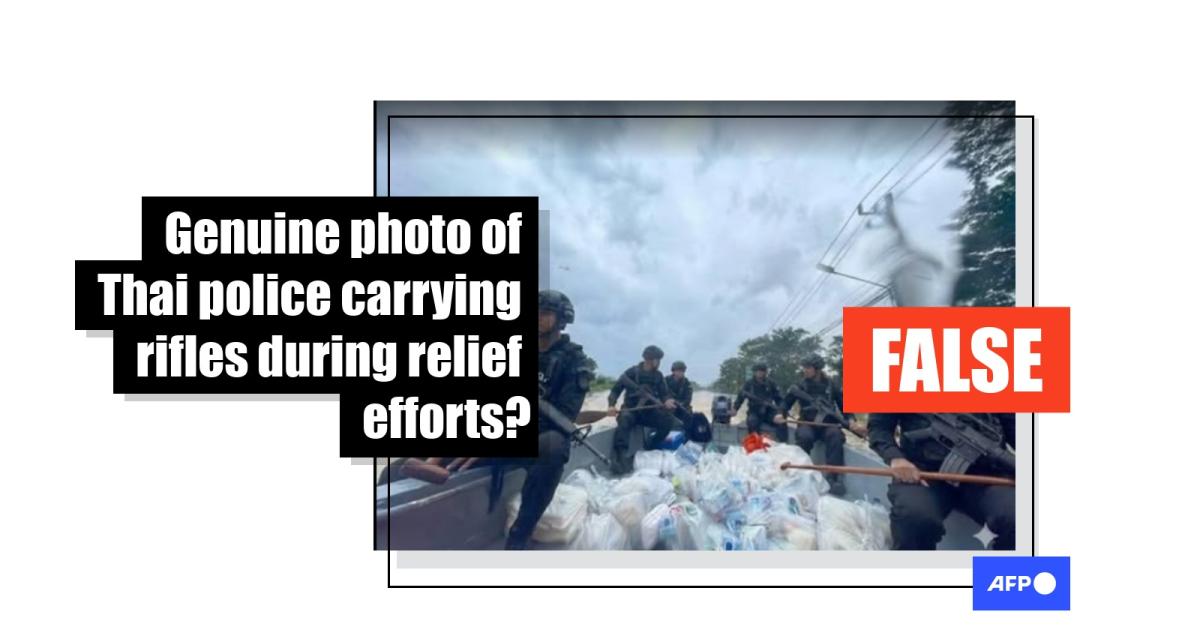 Image of armed police accompanying flood aid in southern Thailand is AI-generated