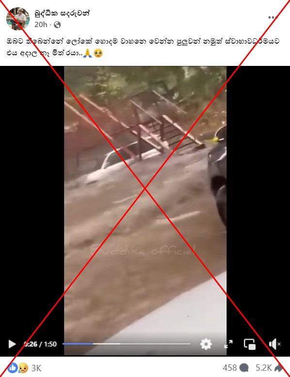 "You may have the best car in the world, but it is nothing in the face of nature," reads the Sinhala-language caption of a Facebook video shared on November 27, 2025.
