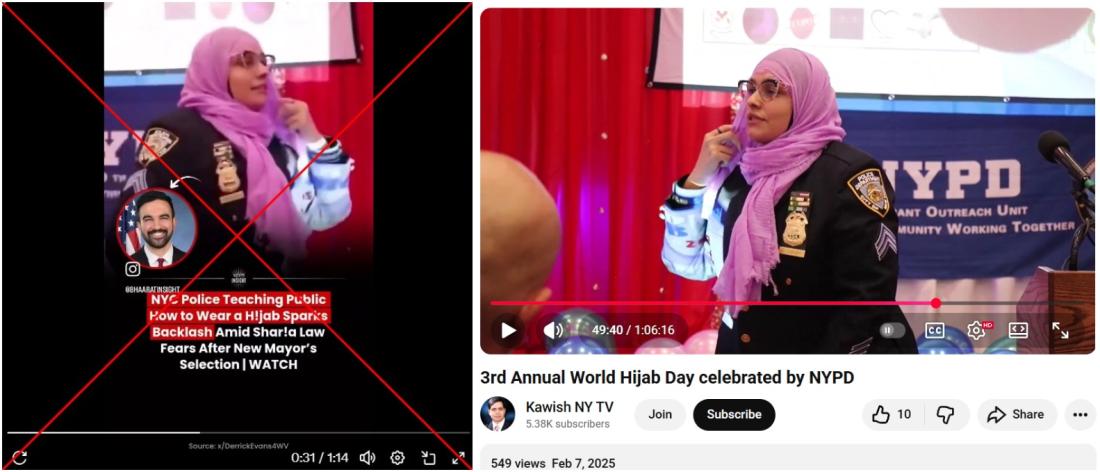 Old video from New York police's World Hijab Day event falsely linked to Zohran Mamdani's election