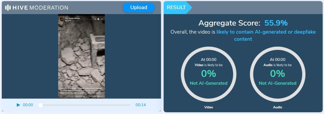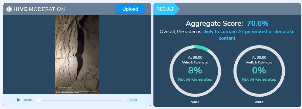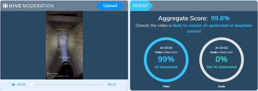 Hive Moderation's AI video detector has flagged all three clips as likely to contain AI-generated content.