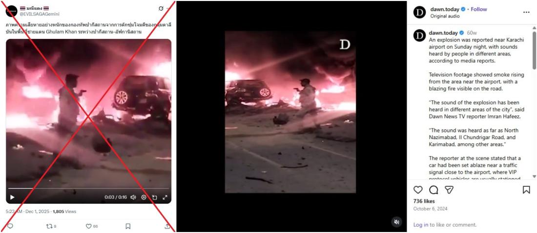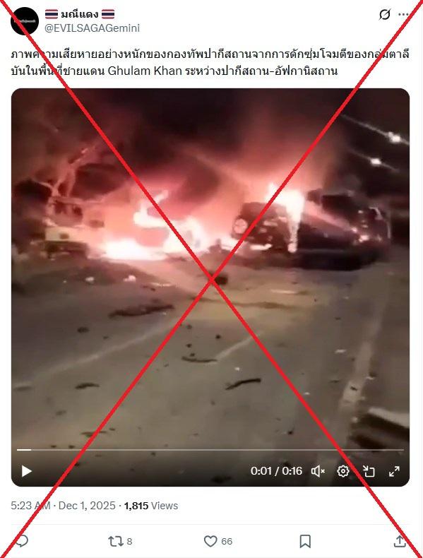 "Severe damage to the Pakistani military from a Taliban ambush at the Ghulam Khan border between Pakistan and Afghanistan," reads the Thai-language caption of an X video shared on December 1, 2025.