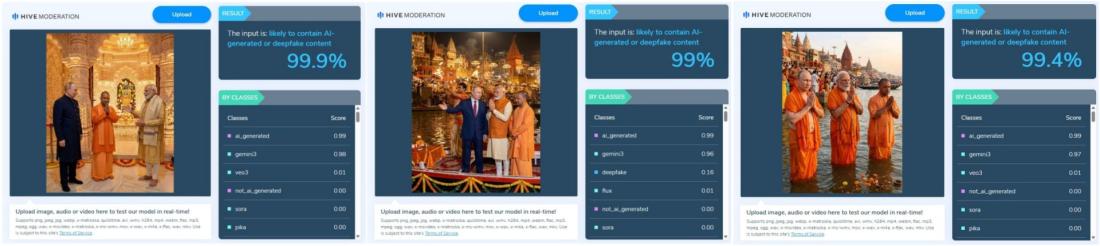 An analysis using Hive's AI detection tool also indicates an approximately 99 percent likelihood the falsely shared images were created with the help of AI tools (archived link).