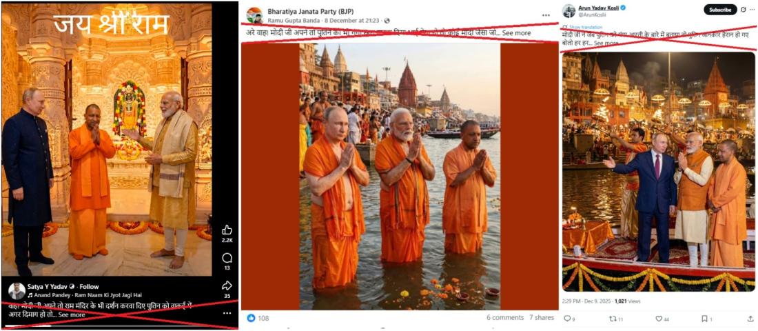 After Russian President Vladimir Putin concluded a trip to India in December 2025, AI-generated images were shared in posts claiming they showed him at religious sites with the country's Prime Minister Narendra Modi and firebrand Hindu monk Yogi Adityanath. There were no official reports of Putin travelling to the sites, nor were they listed on an itinerary shared by India's Ministry of External Affairs.